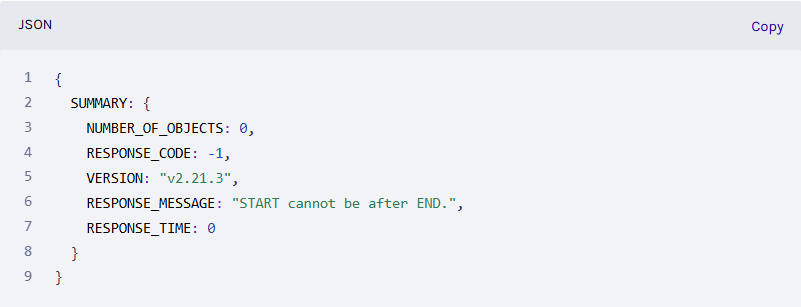 Full details are provided in the SUMMARY object of each response.